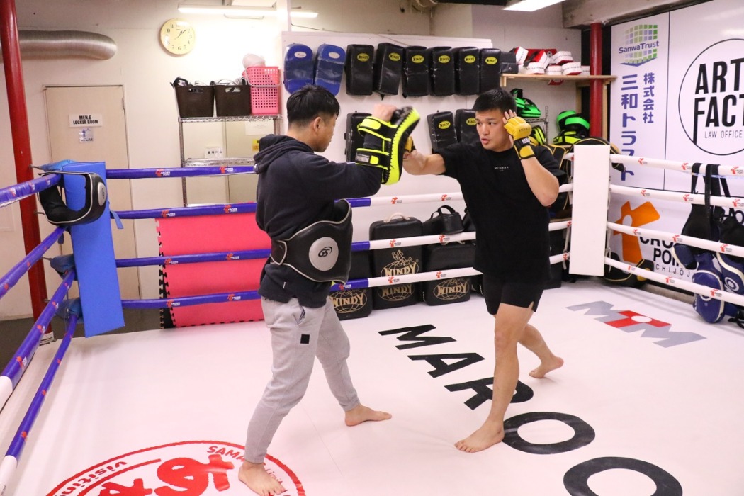 宮原はこの日は1分半のミット打ちを行い、重く切れのいいパンチ、ミドル、ハイキックをトレーナーの持つミットに打ち込み、仕上がりの良さを感じさせた。