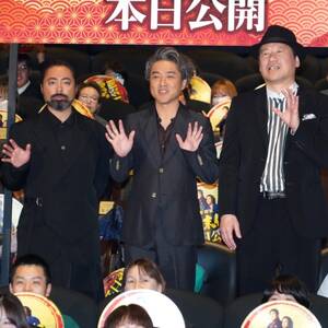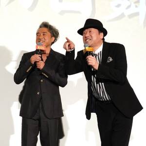 この日は共演の山田孝之、広瀬アリスも駆け付け主演の2人に花束を贈呈。「勇者ヨシヒコ」シリーズをはじめとする福田組仲間である山田にムロは「山田孝之のおかげで僕らも今がある部分もあるし」と感謝。続けて登壇した福田監督も「この4人で一緒に立つのは『大洗にも星はふるなり』(2009年)以来かも。福田組のこの2人が主役の映画は17年間に及ぶ悲願だった」と感慨深げ。ムロと佐藤が出演したテレビの番宣を見たと言い「ろくなことを言ってなかった。でも俺らが子どものころドリフターズにあこがれたように、こんなふざけたおじさんでも映画主演ができるんだと思ってほしい」。