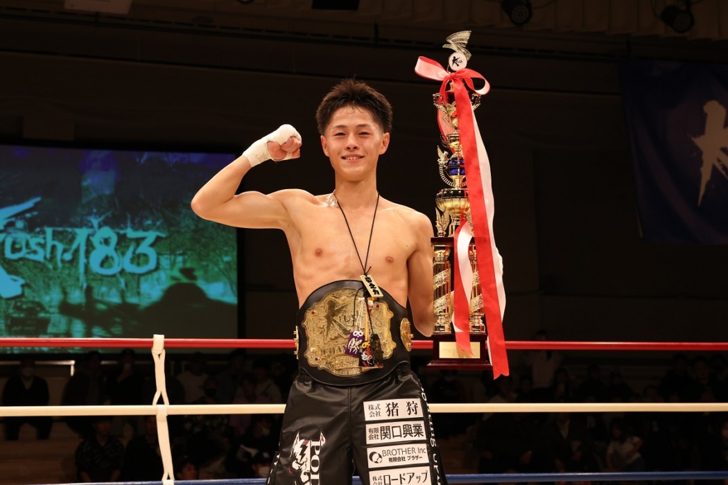 上遠野寧吾が安尾瑠輝に逆転KO勝ちでフライ級王座獲得。涙まじりに「王者としてKrushを盛り上げていけるようにもっと頑張る」【Krush】