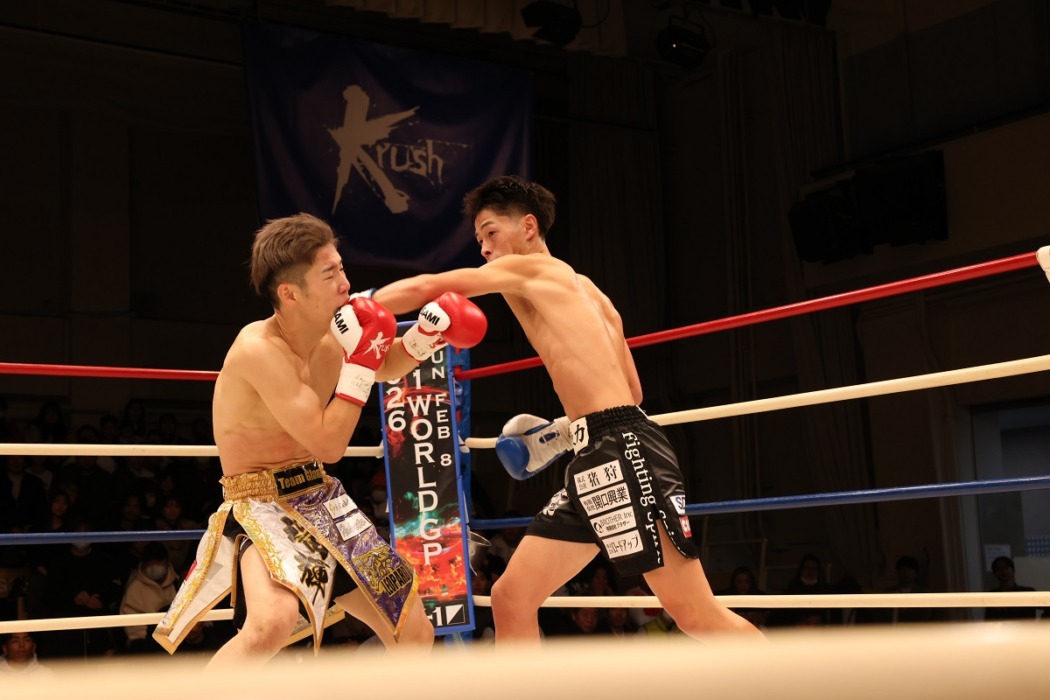 上遠野寧吾が安尾瑠輝に逆転KO勝ちでフライ級王座獲得。涙まじりに「王者としてKrushを盛り上げていけるようにもっと頑張る」【Krush】