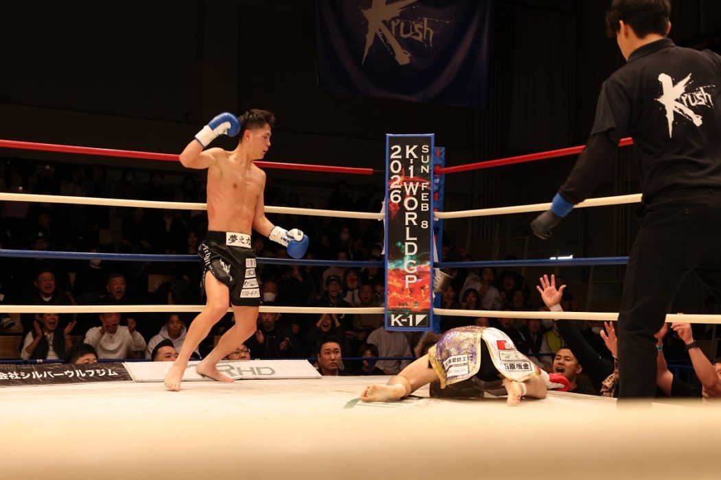 上遠野寧吾が安尾瑠輝に逆転KO勝ちでフライ級王座獲得。涙まじりに「王者としてKrushを盛り上げていけるようにもっと頑張る」【Krush】