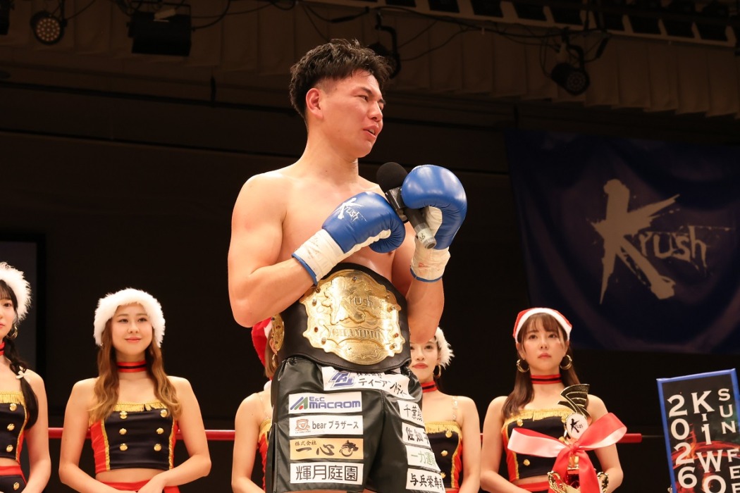 判定でウェルター級王座獲得の齋藤紘也が「変な試合をしてしまってすいません」。消化不良の試合内容に解説の宮田Pは苦言【Krush】