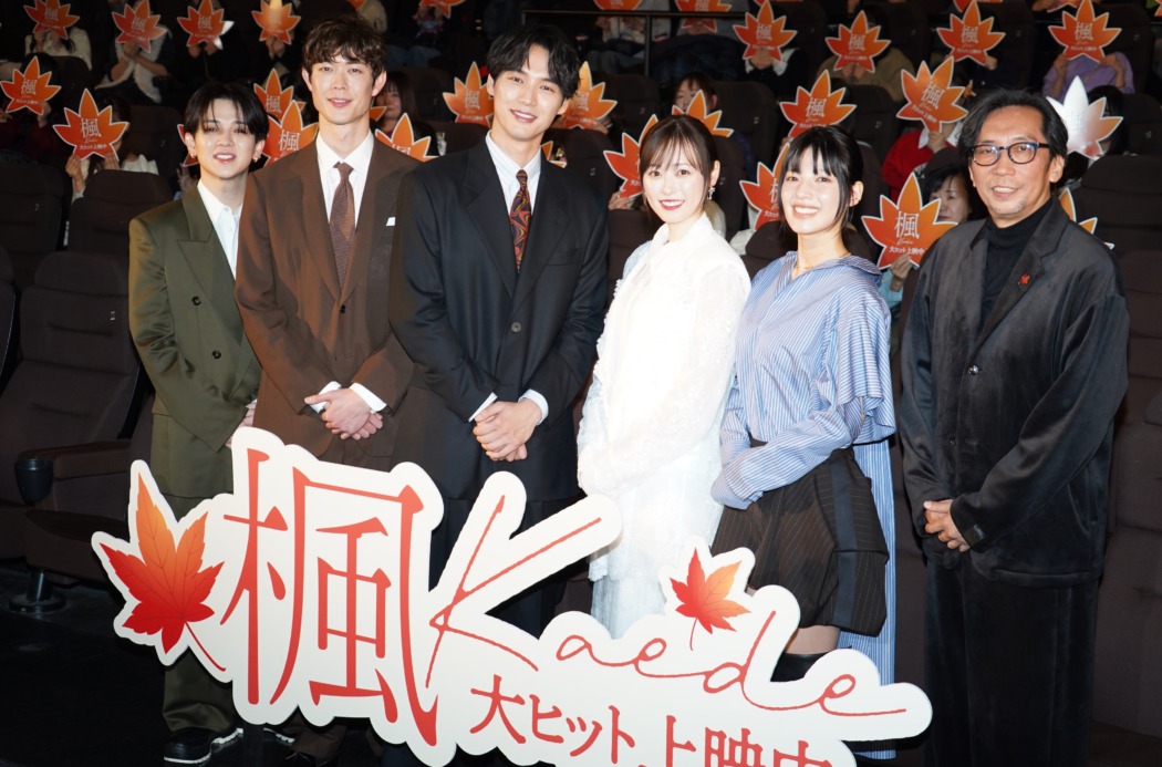 公開中の映画『楓』の舞台挨拶が12月20日、都内にて行われ、俳優の福士蒼汰、福原遥、宮沢氷魚、石井杏奈、宮近海斗(Travis Japan)と行定勲監督が登壇。「素直になれない」という宮近が共演者に悩み相談する一幕があった。