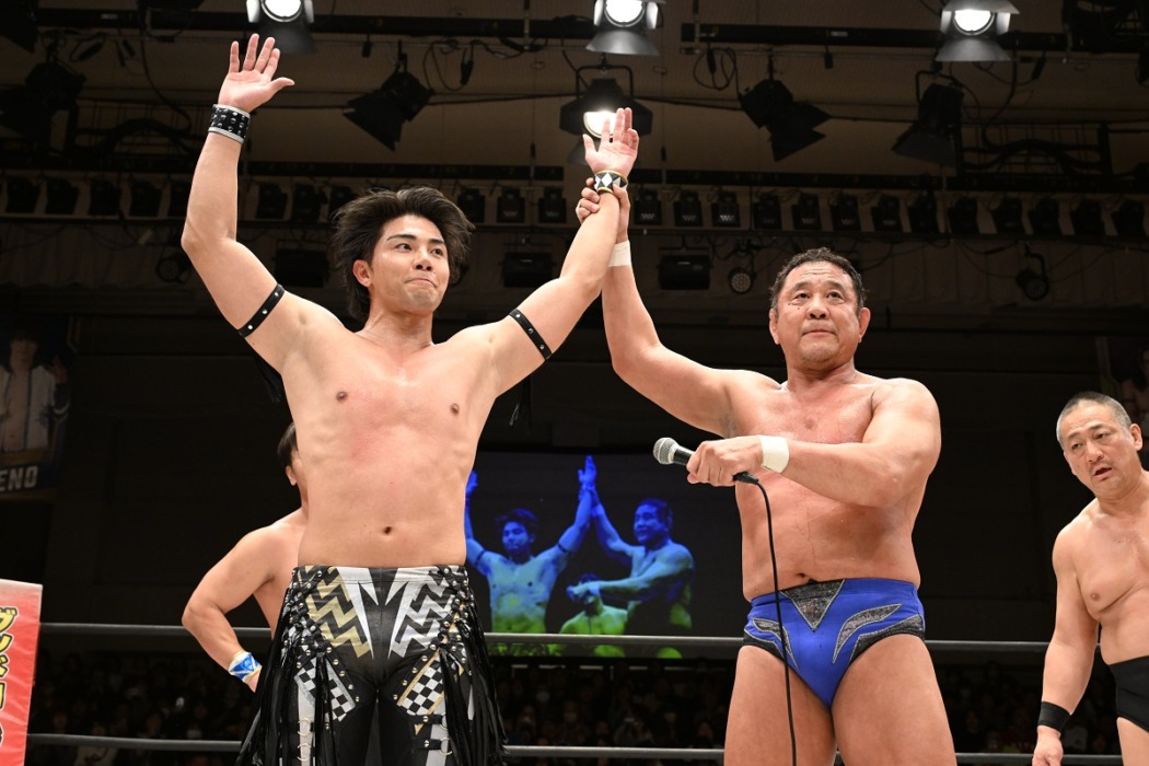 HARASHIMA&○武知海青(9分27秒、片エビ固め)永田裕志&髙木三四郎●