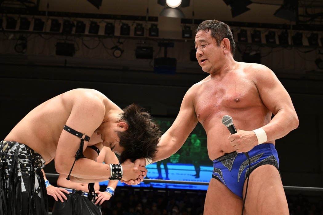 武知の東京ドーム出場についてのアドバイスを求められると「もう10年も出てないんだから忘れちゃったよ。でも彼はプロレスが好きらしいんで、プロレスが好きな人は東京ドームは夢舞台。彼の応援団もたくさん来てくれるからチケットが売り切れちゃうみたいだし。思う存分頑張ってほしい。限られた時間の中で思いっきり武知海青というものを披露してくれれば。まだまだプロレスをやっていくみたいですから、そういういい経験ももしかしたら苦い経験になっちゃうかもしれないけど、それはそれで彼にとって大きな財産になる。なかなかないですよ、デビューしてまだ1年か2年でしょ? その中で東京ドームの花道を歩けるというのは素晴らしいことです。頑張ってほしいです。彼の気持ちを感じられたので、試合でそれを本人に返したし、やっぱりエールを送れたって思いました」と語った。