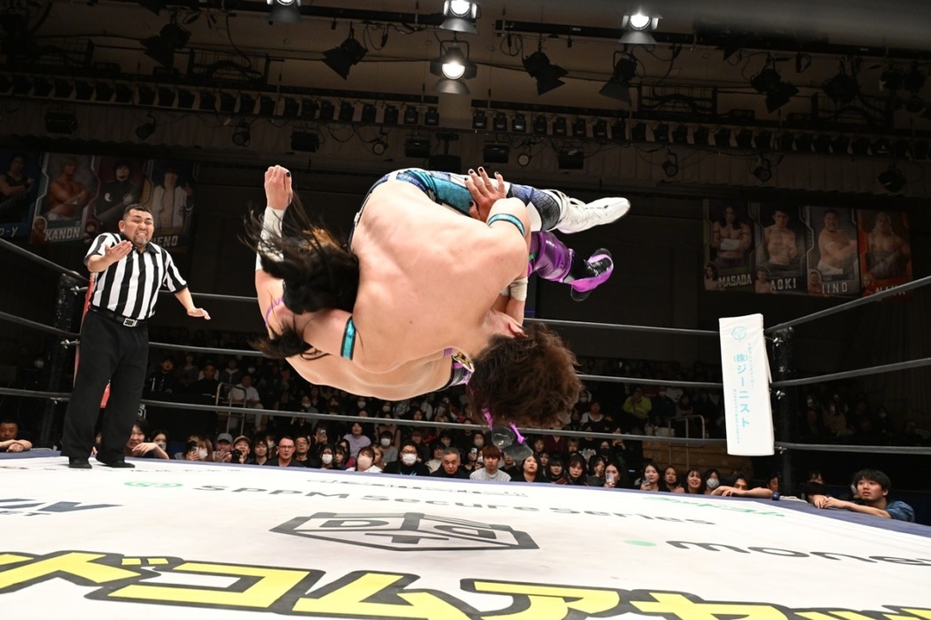 ここで佐々木が現れ「オイ、上野! 今までの俺だったら、今すぐにでもてめえを襲ってるところだけど、俺もキャリア20年だ。そんなことはしない。上野、強くなった。シングル2冠王、(KO-D6人タッグと)全部合わせて3冠王の上野、おまえに正々堂々と挑戦表明したい」とアピールし、右手を差し出した。しかし、上野が握手に応じると急所蹴りを叩き込んだ。さらに佐々木がペディグリー狙いにいくと、クリスが制止。救出に入ったと思いきや、クリスは上野の顔を張って「助けてないよ。俺が挑戦したい」と表明。