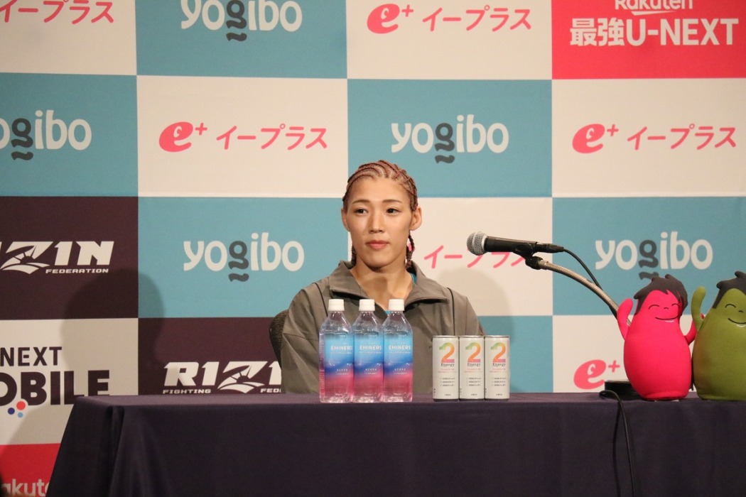 「RIZIN CONFESSIONS」でのRENAの発言については「なんか、怒ってない感じを出してめっちゃ怒ってるなっていう印象。でも、もう試合近いんであとは思っていることを口じゃなくて拳で決めて分からせようと思っています」とばっさり。RENAと一緒に出演していた浜崎朱加についても「自分に2回負けている選手なので何を言われても何も思わない」とダブルでばっさり。