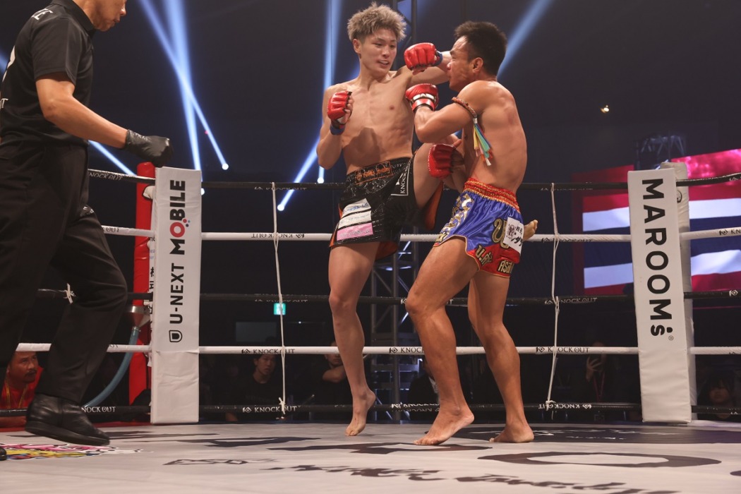 久井は試合後のマイクで「ゴンナパー選手が強くて、歯が折れてしまいました(笑)。今年、ライト級一発目で負けて、悔しい思いをした。いろいろなことも言われたけど、このチャンピオンベルトのために今までやってきました。これからも僕は夢をかなえていくので、これからもよろしくお願いします。1年間、KNOCK OUTをありがとうございました」とエースとして大会を締めくくった。