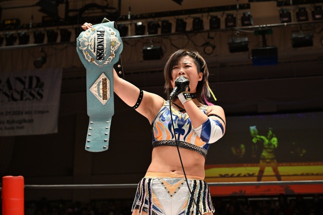 東京女子プロレスが1月4日、東京・後楽園ホールで年始大会「東京女子プロレス’26」を開催した。4年4カ月ぶりに古巣参戦を果たしたMIRAIが後輩の遠藤有栖を破り、インターナショナル・プリンセス王座を初戴冠。次期挑戦者には凍雅が名乗りを挙げた。