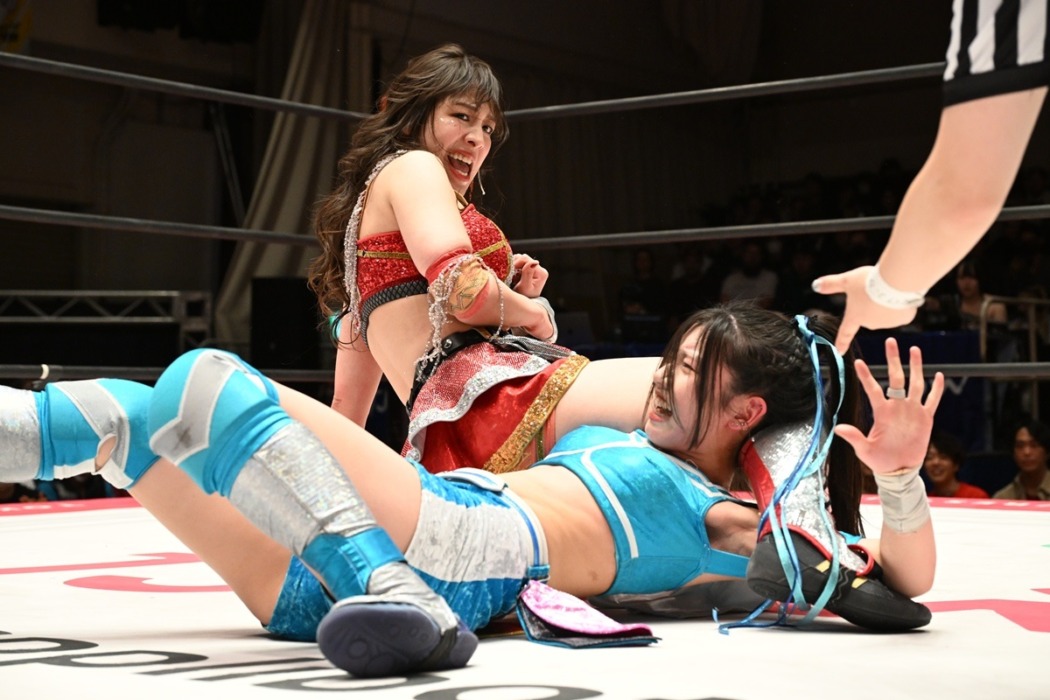 ベルト奪取ならなかった愛野は「負けスタートだね。でも、負けスタートってことは上がるしかない。やっぱり何度も防衛をしてきたチャンピオンだけあった」、風城は「前哨戦で勝つことって、すごい勢いはつくけど、前哨戦で勝っても当日勝てないと意味がないので。でも挑戦表明をしてから今日までユキさんと仲良くなれたかなって思ったし、タッグチーム力も上がったかなって思うし、今日が終わりじゃないんだし…」と話した。