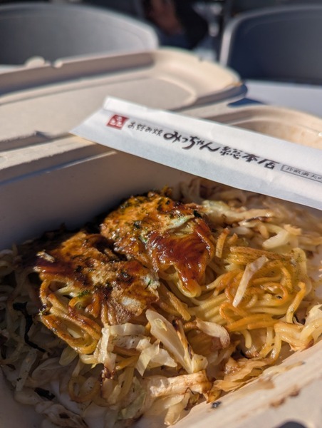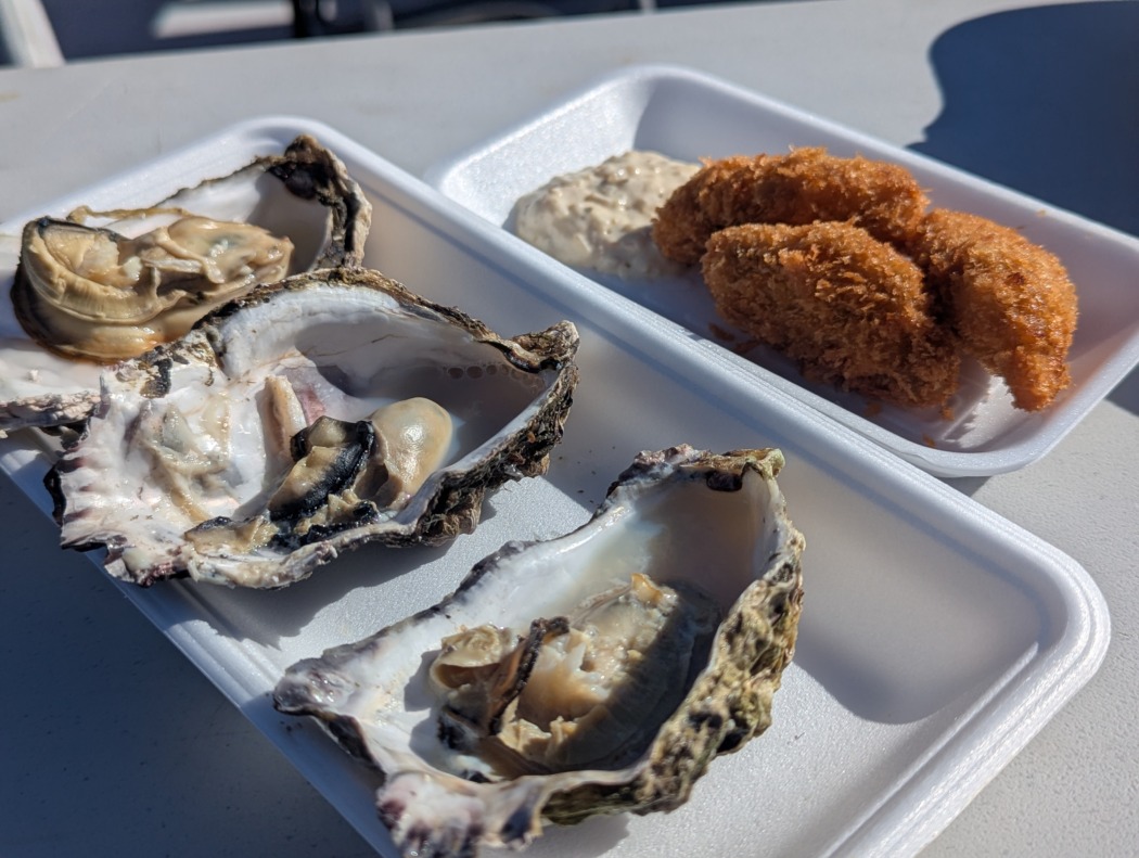 外国からの観光客と思われる団体の存在を背に感じながら、蒸し牡蠣、カキフライ、お好み焼きでオーダーストップ。呉海自カレーのハーフサイズの存在に後ろ髪をひかれたが、目が食べたいだけだと言い聞かせ、1月の真っ青な空のもとで、2種類の広島産の牡蠣と、広島のお好み焼きの名店の味を堪能した。