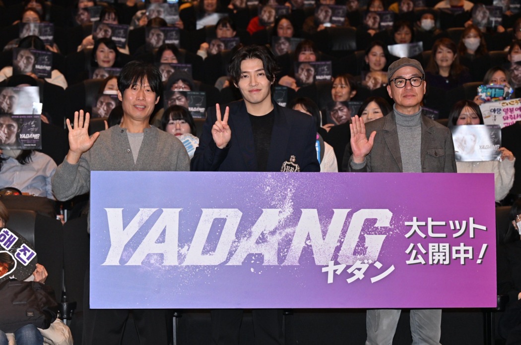 映画『YADANG/ヤダン』の初日舞台挨拶が1月9日、都内にて行われ、来日した俳優のカン・ハヌル、ユ・ヘジンとファン・ビョングク監督が登壇。笑い満載のトークで観客を盛り上げた。