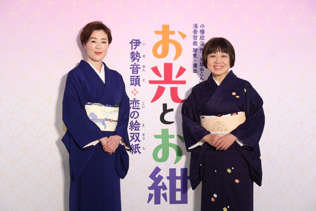 日本を代表する喜劇役者・藤山直美と国際的にも評価の高い俳優の寺島しのぶの12年ぶりの共演となる舞台「お光とお紺~伊勢音頭 恋の絵双紙~」の会見が1月13日、都内で開催された。