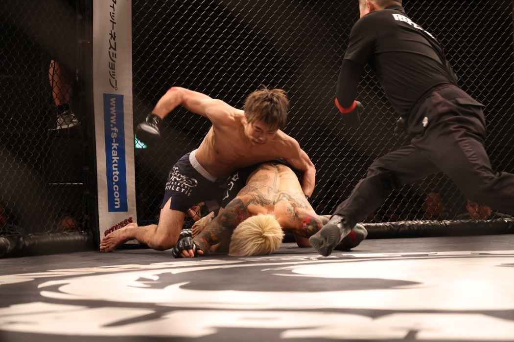 ダウンを奪った藤井がパウンドの追撃でTKO勝ち(撮影・青木純)