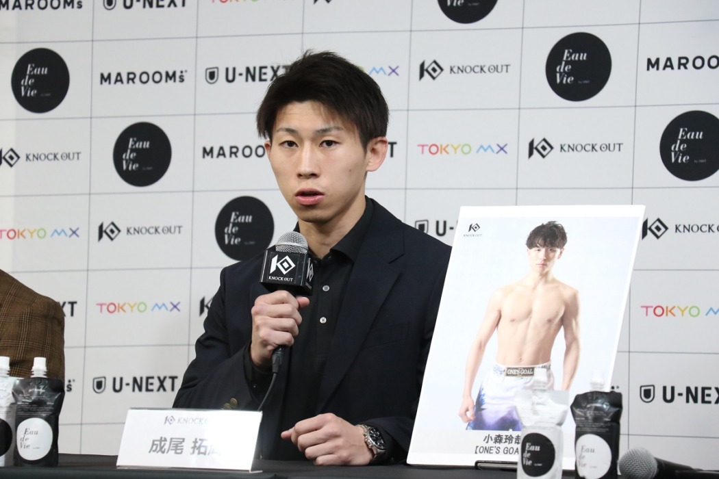 会見に出席した成尾は「自分は今年中には必ずスーパーフェザー級のチャンピオンになるので、そこまでもチャンピオンになるまでのストーリーとして、今回の試合、必ずぶっ倒してKNOCK OUTのファンの皆さんに自分の強さを見せたいと思います」と早くも王座を見据えた。