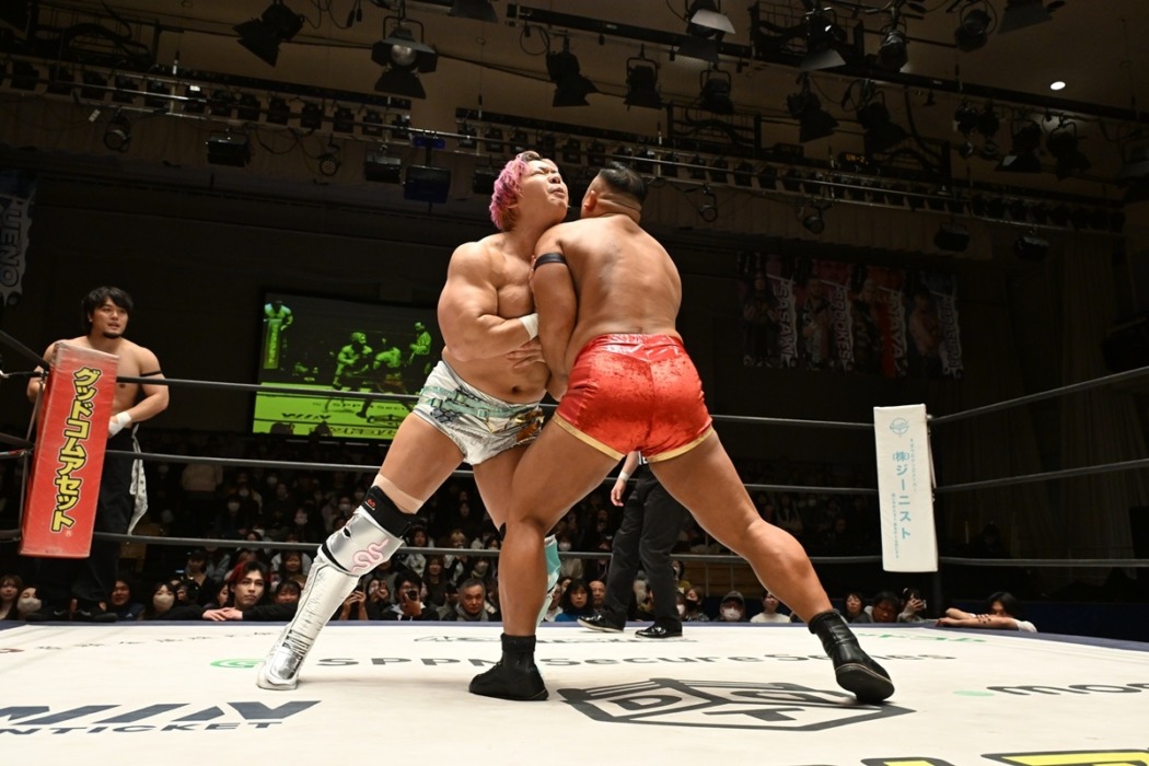 DDTプロレスが1月25日、東京・後楽園ホールで「MISSION IN BATTLE~新春絢爛~」を開催した。ストレンジ・ラブ・コネクション(S.L.C.)のMAO&KANONが飯野雄貴&納谷幸男(The Apex)を退け、KO-Dタッグ王座3度目の防衛に成功。戦いを通じて認めったことで、The Apexの2人はS.L.C.へ合流することになった。