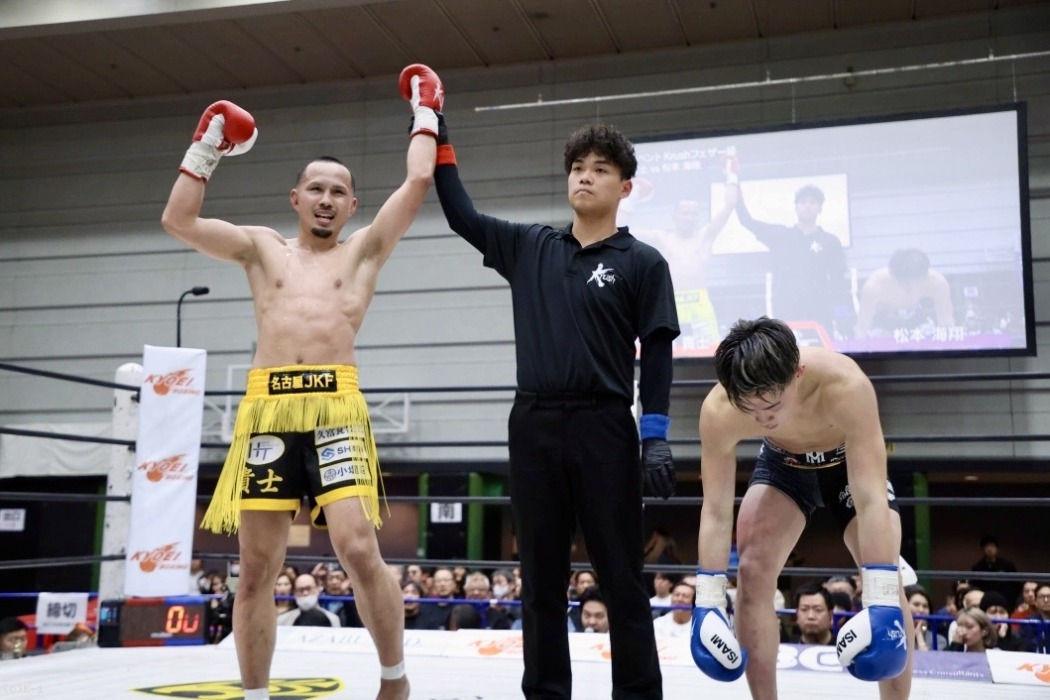 判定はジャッジ3者とも10-9の3-0で新美が勝利。松本はがっくりと肩を落とした。