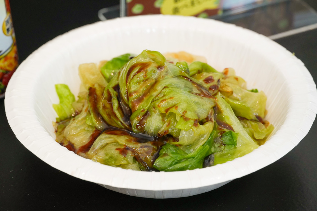 レタスひと玉を20秒ほどゆでて、オイスターソースとごま油をトッピングした「瞬間消滅レタス」
