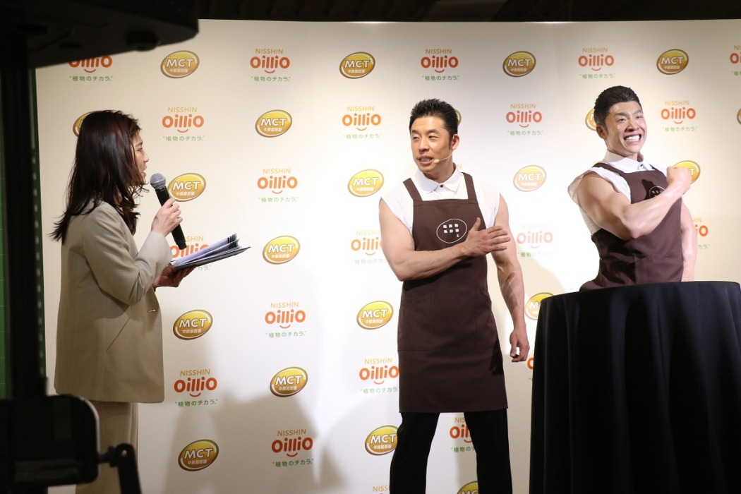自身が不在の際に店頭に置かれる「きんに君オブジェ」とこのイベントで初対面のきんに君は「全く僕と一緒じゃないですか。この筋肉具合もすごくリアルに表現していただいている。うっすら見える、この血管のラインもすごいリアルに再現していただいてます。顔の表情もこんなにリアル。僕と同じタンクトップを中に着ていただいている。これはもうカフェに来た時に、僕と間違えて話しかける人がいるんじゃないですか」とその出来に満足。