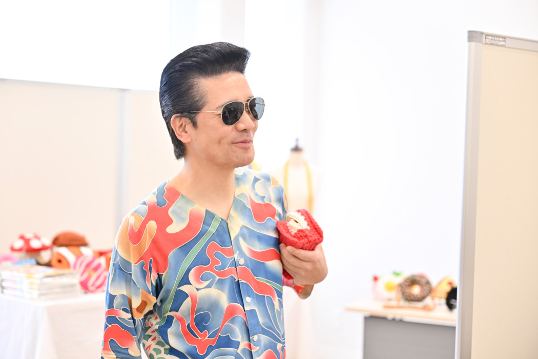 この日は掲載されたポシェット「おにぎり海苔」「カクレクマノミ」「ドーナツいちご」から好きな作品を選んでその場で編めるイベント。入り口で仁王立ちで待ち構える滝沢ににわかに緊張が高まるが、一人ひとりに優しく声をかけ、自身のワークショップに参加すると「ホゥ」が貯まり「10ホゥ」になると1回分が無料になる手製の「ホゥホゥカード」を配布。
