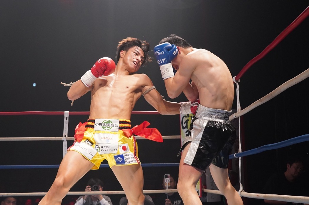 3R、ワンツーのジンホイ。石井は左ミドル。圧をかけるのはジンホイ。ジンホイの右ストレートをぎりぎりでかわす石井。石井は右ロー、左ミドル、左ハイと蹴り分ける。ジンホイは圧をかけるが足を使って巧みにかわす石井。ジンホイはパンチを連打。石井はいなしてパンチを返す。石井は足を使って回りながらも左フック。ジンホイも左フックを返す。回る石井が右ハイ。石井は左ボディー、右アッパー、右ロー、左ハイと散らす。なおも詰めて左ボディー、右アッパーの石井。近距離で右アッパーの石井。詰めて右ストレート、左フック、左ボディー、右アッパーと畳みかける石井。ジンホイは防戦一方で反撃ができないまま試合終了。