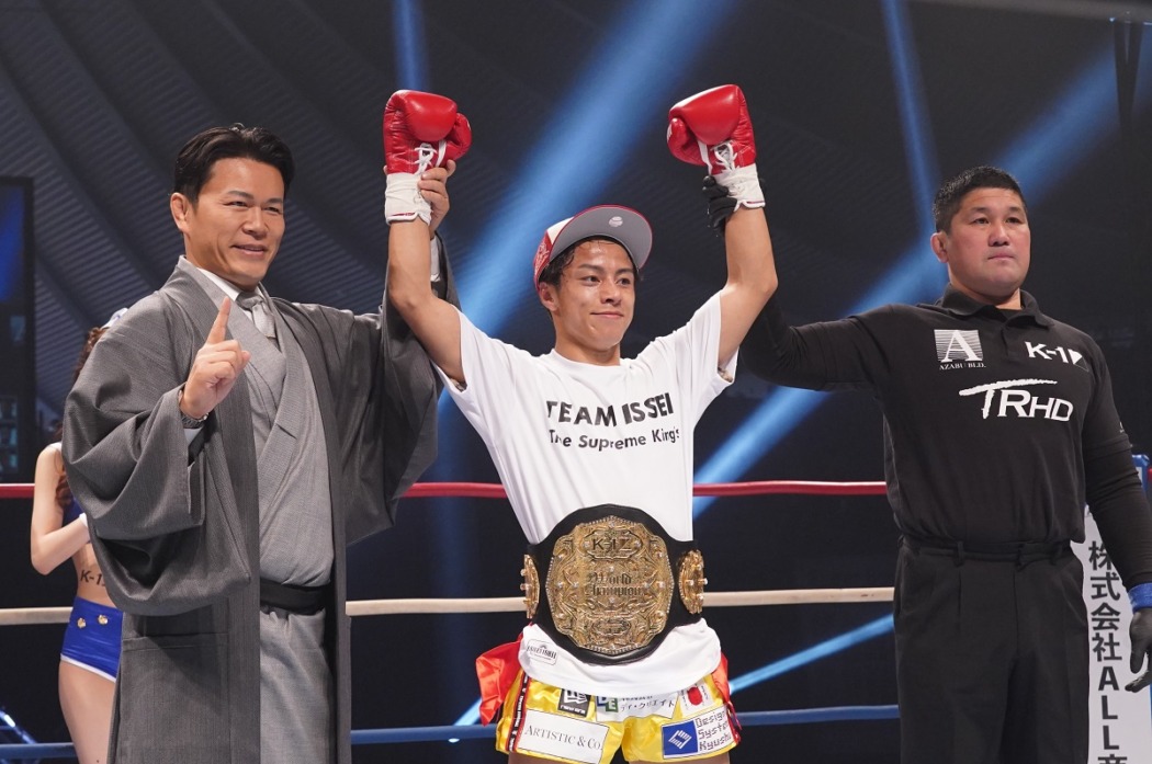 初防衛に成功の石井一成が「毎試合防衛戦でいいと思う。来月でもやります」と王者の覚悟。1階級上の王者・金子晃大との対戦にも興味【K-1】