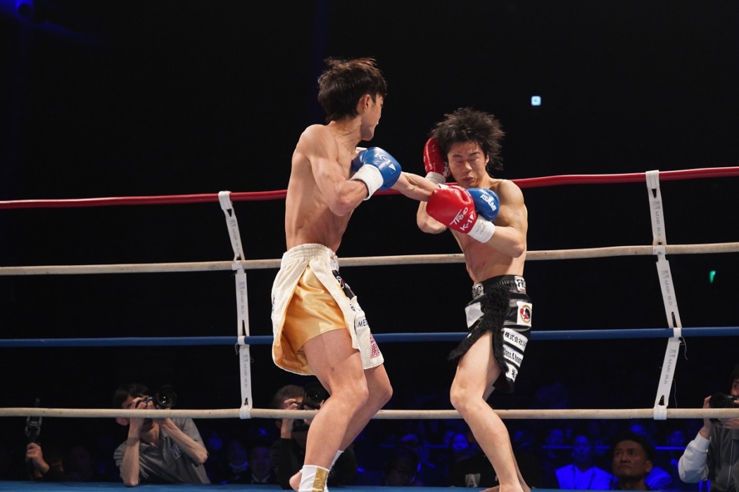 2R、じりじりと距離を詰めて右ローの金子に大久保はワンツー。金子が詰めると大久保は左ジャブ、金子は右カーフ。金子は左ボディーストレート。金子は左ジャブを連打。大久保が飛びヒザ。金子がガード。大久保はワンツー。なおも圧をかけて左フックをヒット。大久保は左ジャブで距離を調整。金子はまた距離が遠くなる。大久保は飛びヒザ、ワンツー。金子は左ジャブ。金子は蹴りが出なくなる。