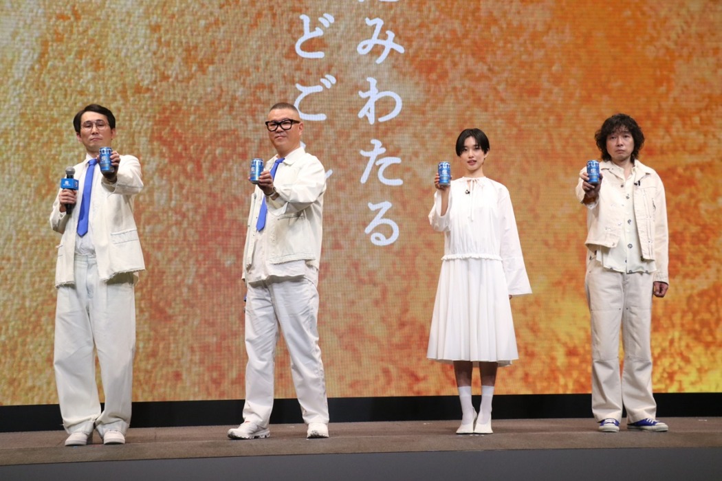 じろう、長谷川忍、河合優実、斉藤和義(左から)が乾杯