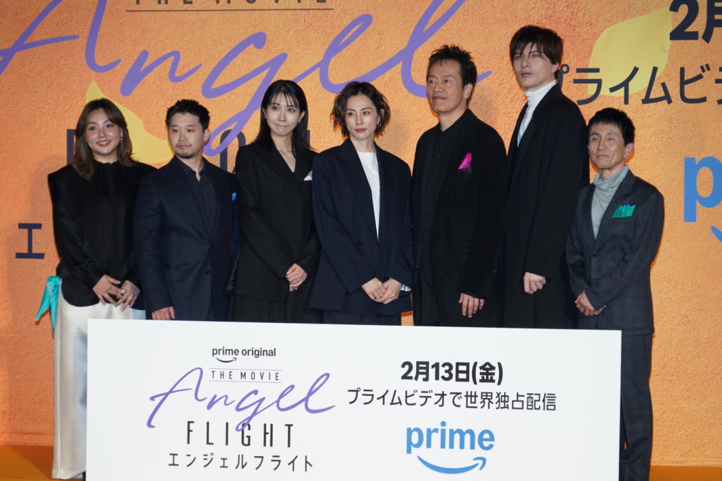 映画『エンジェルフライト THE MOVIE』(2月13日よりPrime Videoにて配信)の完成披露舞台挨拶が10日、都内にて行われ、俳優の米倉涼子、松本穂香らキャストが登壇。米倉が舞台挨拶登壇への緊張を語りつつ、遠藤憲一のねぎらいに感激した。