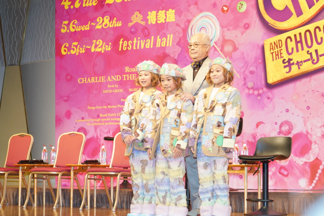 そんな“堂本ウォンカ”に新たにチャーリー・バゲットをトリプルキャストで演じる小金輝久、瀧上颯太、古正悠希也の子役3人が「後ろに堂本さんがいたとき背中がじんじんした。たぶん何か出てる」「オーラがすごい」「キラキラしてる」と憧れのまなざしを向けると、堂本は「(稽古中の)昨日はジャージの、ただの汚いおっさんでしたけど。これからは稽古場にはちゃんとひげをそって行こうと思います」と返しつつ、3人のチャーリーに「年齢関係なく彼らから教わることがたくさんあると思います。昨日も(セリフの)名前を呼ぶ順番が間違っていると教わりましたし」と明かし、一同も大笑い。