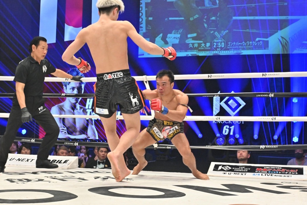 2R、圧をかけるゴンナパーが左ロー。久井は左右の連打を顔面にまとめると効かされたゴンナパーは腰を落とし、あわやダウンのシーン。立て直して前に出るゴンナパー。久井は左ストレート、右フック。ゴンナパーは前に出るが組み止める久井。圧をかけるゴンナパーに久井はカウンターの左ストレート。久井はワンツーから右フック。突進するゴンナパーを組み止め崩す久井。久井は右ジャブを連打。そして何度も組み付いて崩す久井。ゴンナパーがヒジで飛び込むが潜って組み止める久井。ゴンナパーは左ロー。久井は右ジャブ。詰めるゴンナパーをいなしてこかす久井。