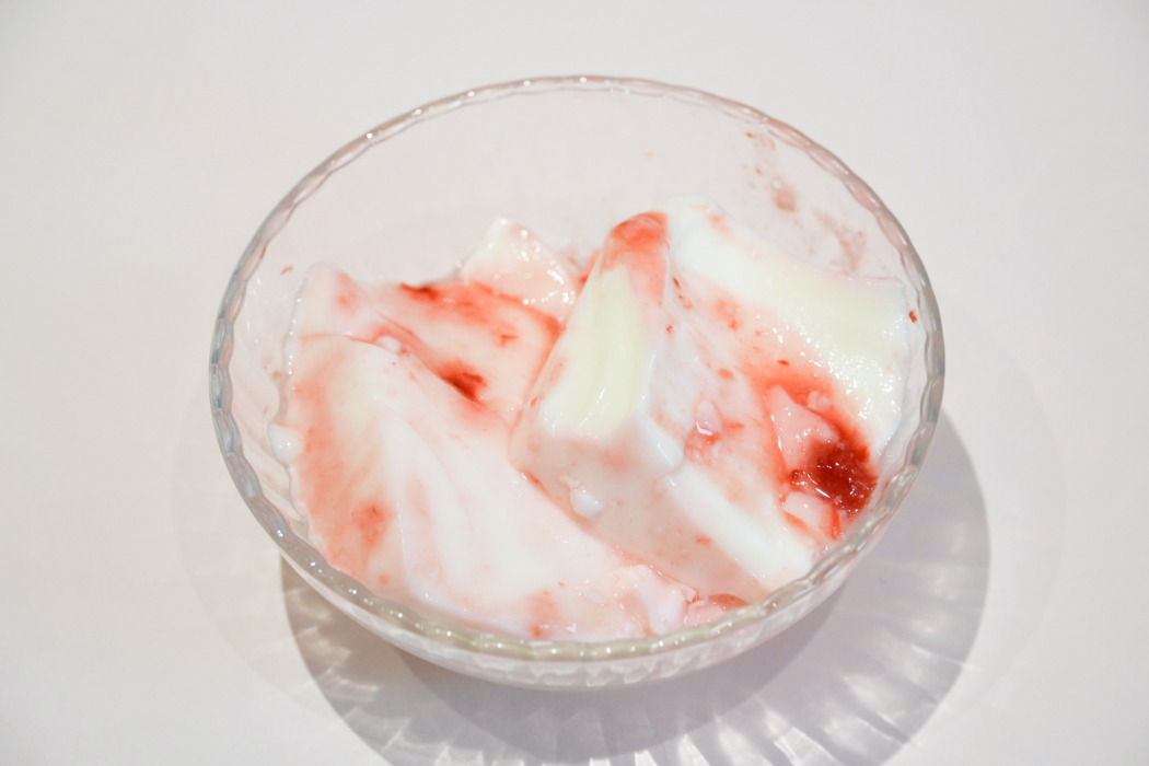 とろけるようなぷるぷる食感の「いちご杏仁 トッピング」