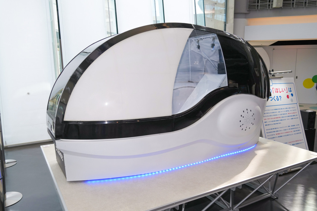 実際に万博で展示されていた「ミライ人間洗濯機」実機を展示