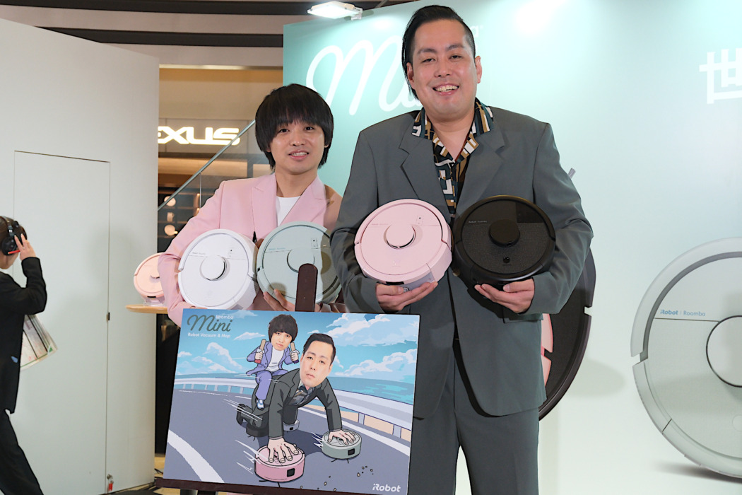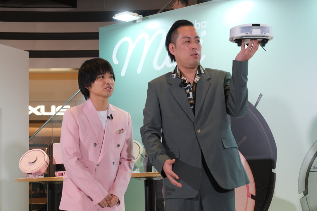 お笑いコンビのエバースがロボット掃除機「Roomba Mini(ルンバ ミニ)」の1日宣伝大使に就任、2月21日、都内で行われた就任イベントに登壇した。