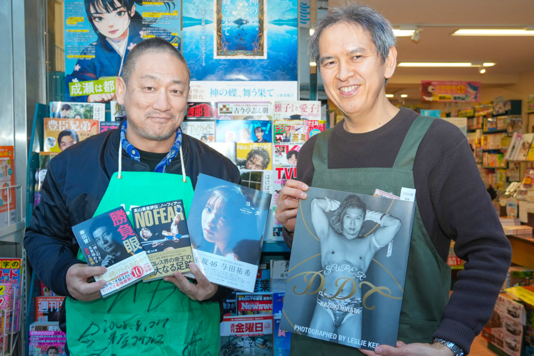 この日はずっと店頭に立って、サイン色紙を書いたり記念撮影をしたりしてファンと交流。伊野尾店長が「寒いのにみんな楽しそうで来てもらってよかった」と喜ぶと、髙木も「お客さんからの感謝の言葉や “いつもDDTを楽しんでます” と言っていただいてすごくありがたい」と応じ「伊野尾書店さんはプロレスの聖地といってもおかしくないので、ぜひお近くに立ち寄った折には足を運んでいただけたら。今度はリニューアル記念で “本屋プロレス” ができればと思います」とエールを送った。