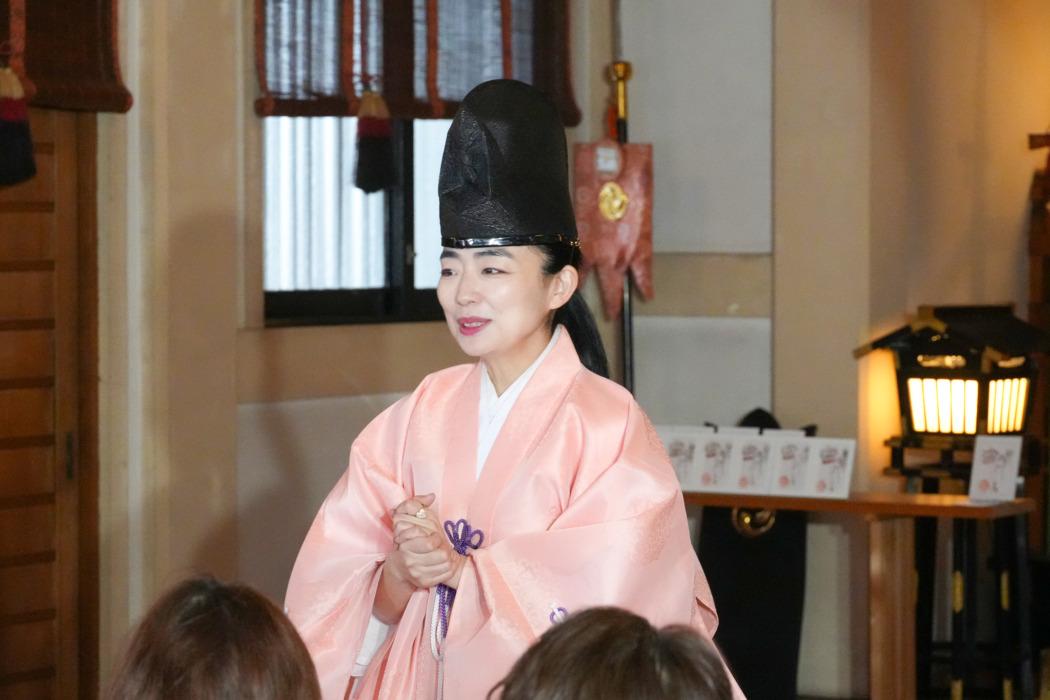 今戸神社の由緒を説明する神主の市野智絵さん