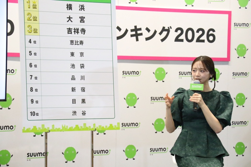 タレントの森香澄がお笑いコンビ「フットボールアワー」の岩尾望と後藤輝基とともに2月25日、都内で行われた「SUUMO住みたい街ランキング 2026 首都圏版」の記者発表会にゲストとして出演した。