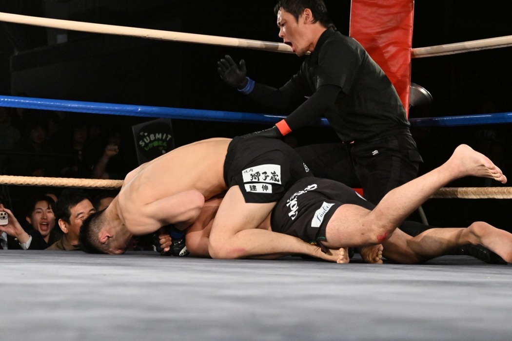 藤田ムネノリがアマ時代に敗れた人見礼王に雪辱の一本勝ち。「ちゃんと一本で勝ちました。世界ランカーと戦わせてください」とアピール【修斗】
