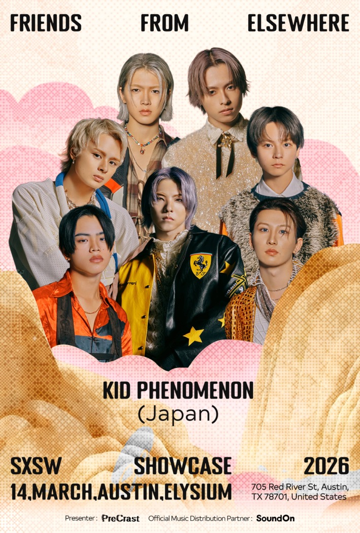 LDHの若手ダンス&ボーカルグループのKID PHENOMENONが、米テキサス州オースティンで開催される世界最大級のコンバージェンス(融合型)・カンファレンス&フェスティバル『SXSW 2026』(3⽉12〜18⽇)のオフィシャル・ショーケース『FRIENDS FROM ELSEWHERE』に出演することが発表された。グループが出演するのは、現地時間3月14日22時10分(日本時間3月15日12時10分)。