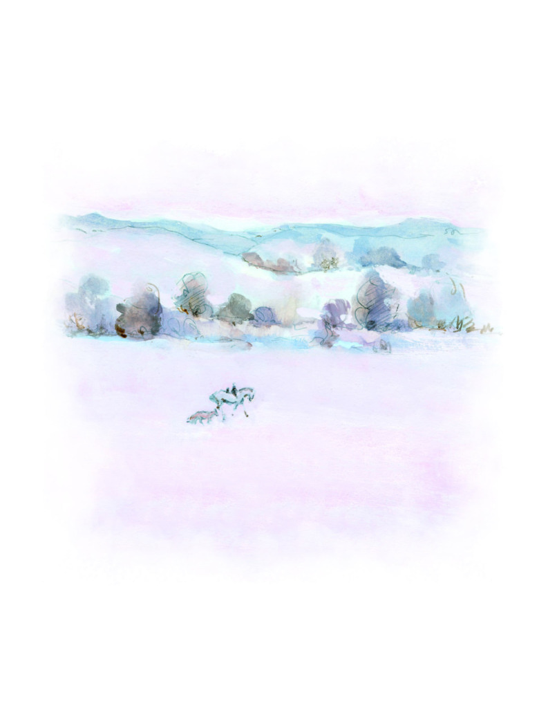 川村さんが「いいなと思った」という限りなく白に近い淡い色彩が美しい場面(『きみをわすれない ぼく モグラ キツネ 馬 そして嵐』より)