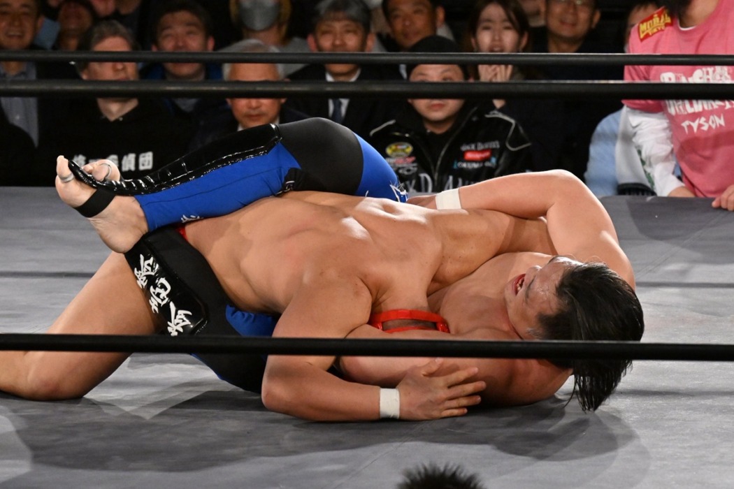 両者立ち上がると佐藤は張り手、八須はエルボーの打ち合い。八須が頭突き。佐藤はヒザ十字からヒールホールド。立ち上がろうとする八須をバックドロップで投げ捨てるがカウント2で返す八須。佐藤は再びヒザ十字を狙うが、しのいだ八須がジャーマンからスピアー。続く八須のスピアーを組み止めた佐藤がフロントネックロック。なんとか脱出を図る八須だったが、佐藤がなおも絞め上げると八須がタップして佐藤の一本勝ちとなった。