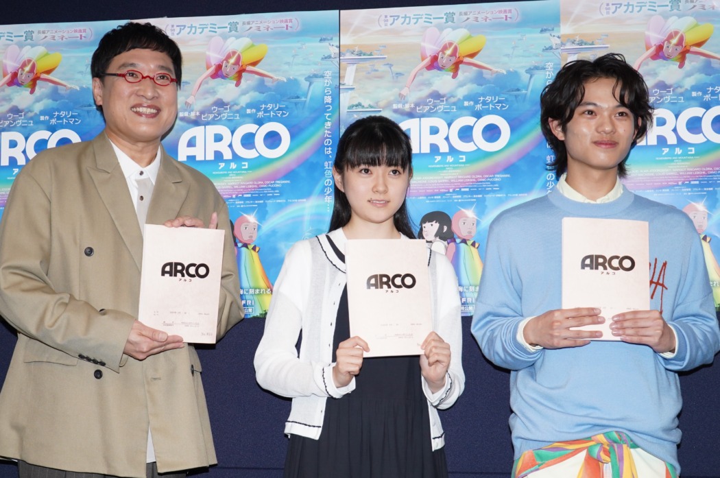 アニメーション映画『ARCO/アルコ』の公開アフレコが3月11日、都内にて行われ、日本語吹き替え版声優を務める黒川想矢、堀越麗禾、山里亮太が登壇。山里が注目の若手2人の才能に感嘆しつつ、芸能界の先輩としてアドバイスを贈った。