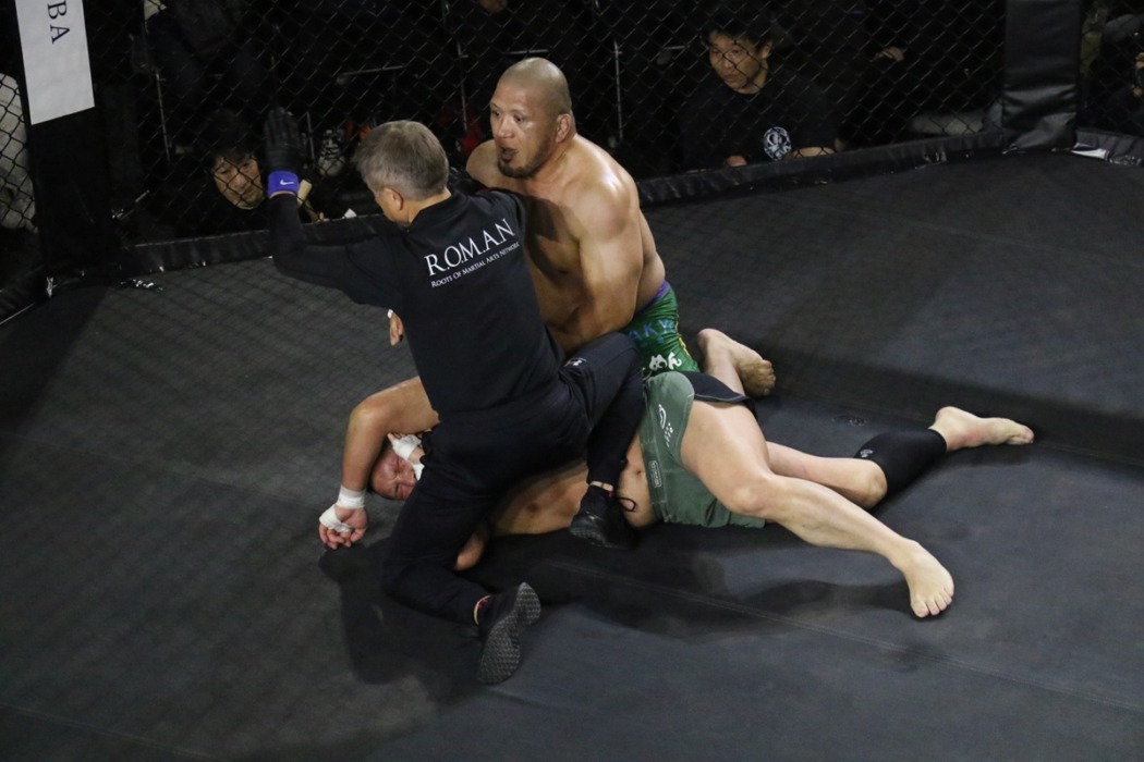 関根シュレックが15年ぶりMMA参戦の小路晃にTKO勝ち「最後は寝技にいってしまった。本当は最後まで殴り合いたかった」と涙【ROMAN 4】