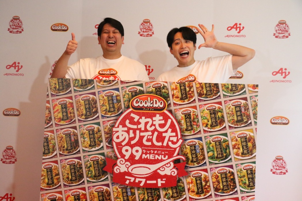 お笑いコンビ「レインボー」のジャンボたかおと池田直人が3月18日、都内で行われた「味の素株式会社『Cook Do これもありでした 99メニュー』メディア発表会」にゲストとして出演した。