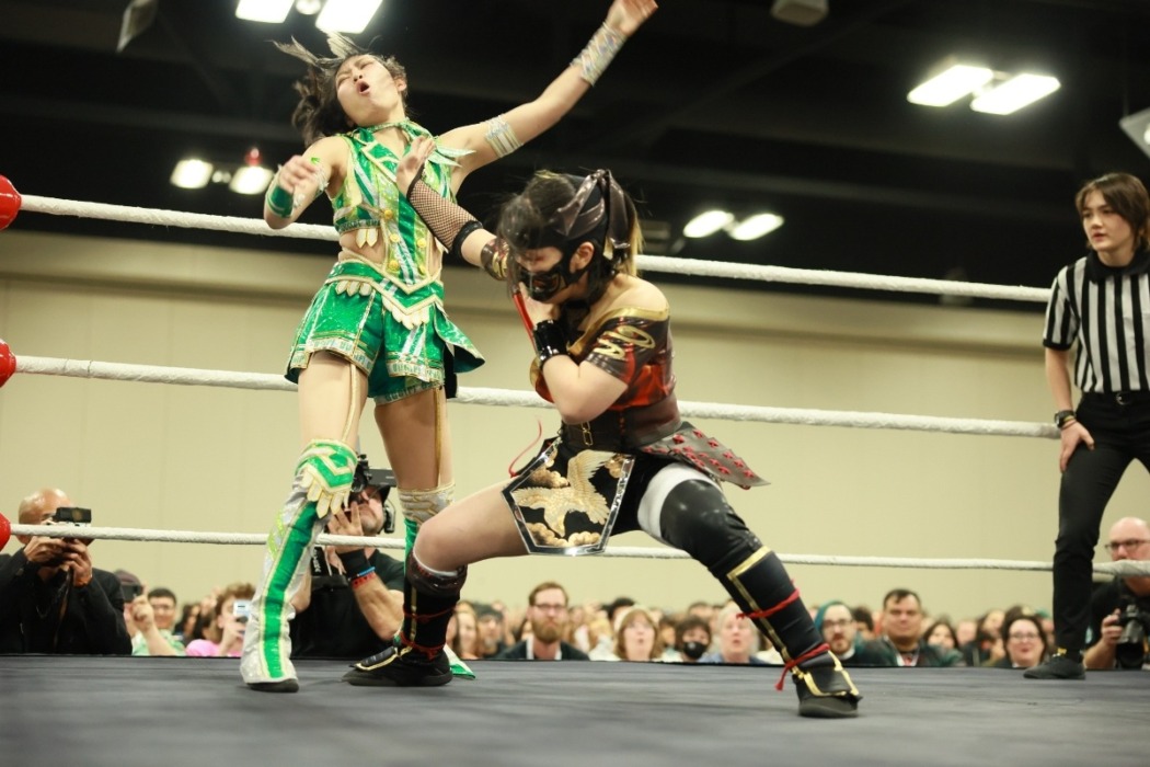 東京女子プロレスが3月17日(日本時間18日)、米テキサス州オースティン・パーマーイベントセンター展示ホールで「TJPW TEXAS STAMPEDE – Austin DAY1」を開催した。鳥喰かやから覆面を脱ぎ捨てた「ハットリ桜」が米テキサスの地での新たなスタートを白星で飾った。
