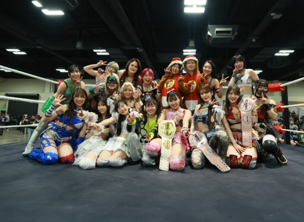 また、メインイベントでは渡辺未詩、鈴芽組が瑞希、高見汐珠組と対戦し、渡辺がティアドロップで高見に勝利。試合後には全選手がリングに集結し、渡辺が「オースティン2日間ありがとうございました。2日空いて、ダラス、ヒューストンと大会がありますので、皆さん来てください!」とマイク。