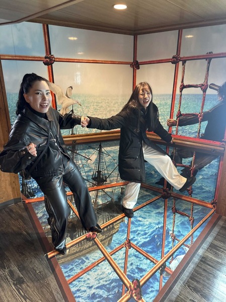 船の中にトリックアートがあって、さつきと撮ってみました!笑
