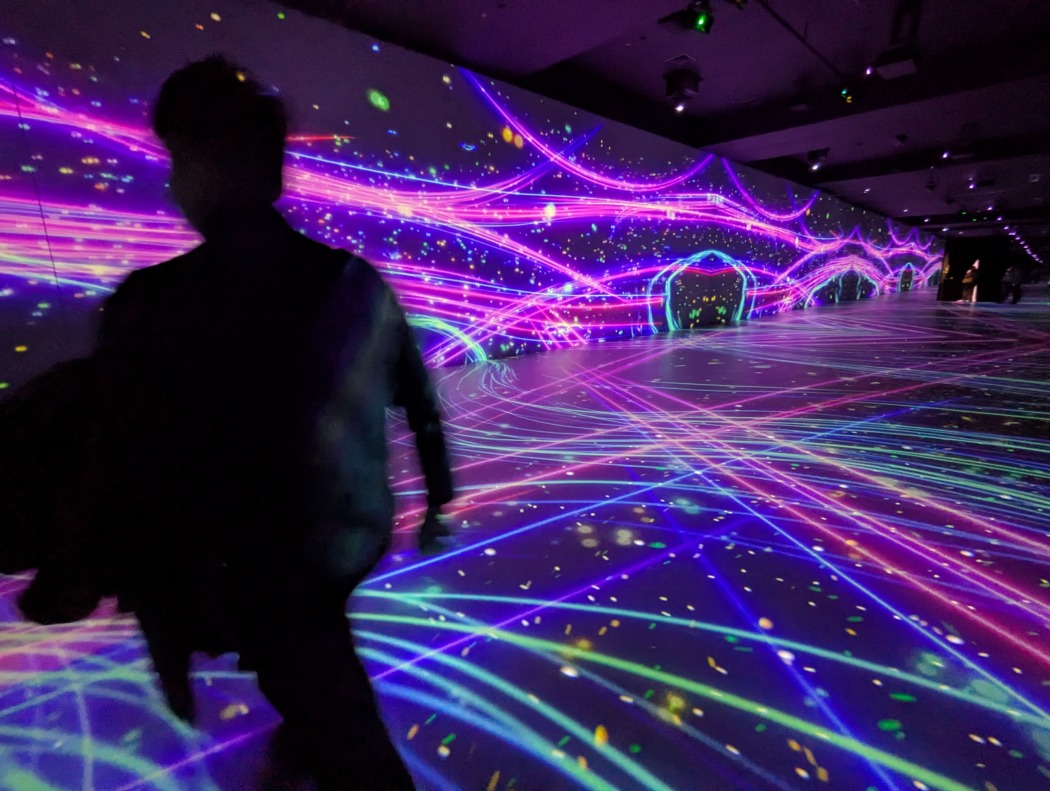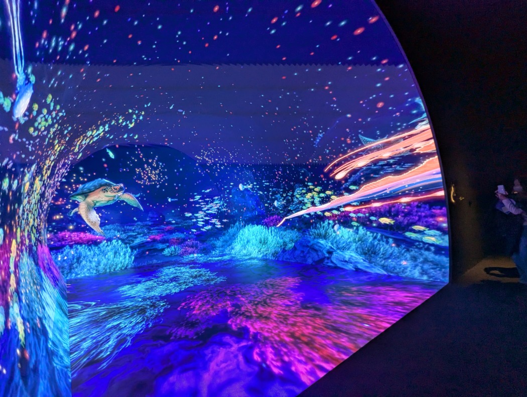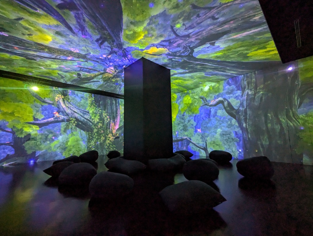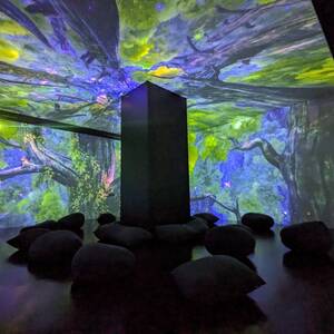 同施設が、デジタル技術による幻想的な映像空間のなかで生き物や自然との遭遇を楽しめる没入型体験施設であることから、報道陣から最近没入しているものがあるかと質問が。