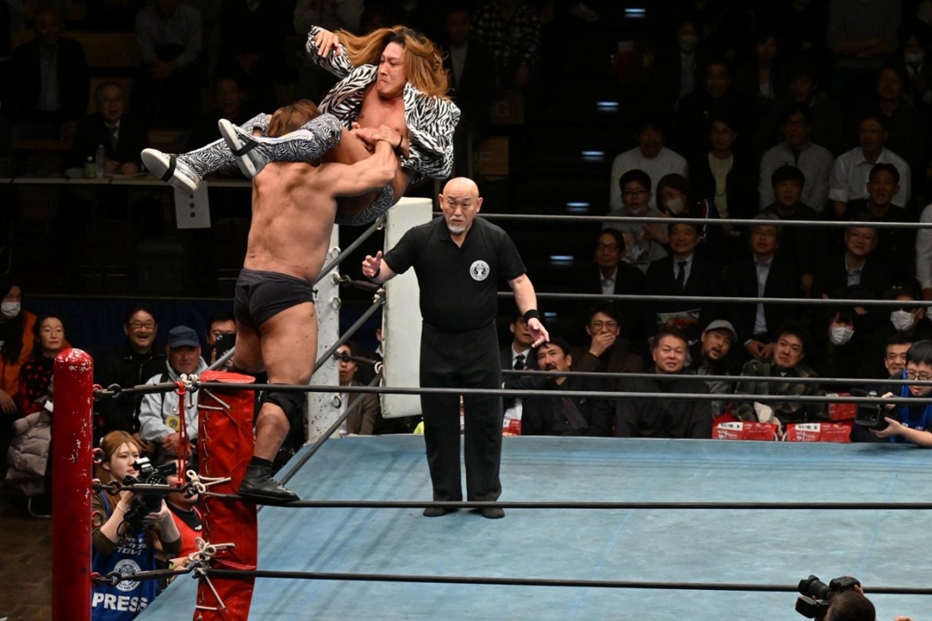 形勢逆転と思われたが、黒潮のスワンダイブ式ボディーアタックを受け止めた関本がパワースラム。関本のエルボーと黒潮の張り手のラリー。ロープに走った関本に黒潮がカウンターのトラースキック。ふらつく関本にトラースキックを連打の黒潮。イケメンプレスは2発目を関本がヒザで迎撃。