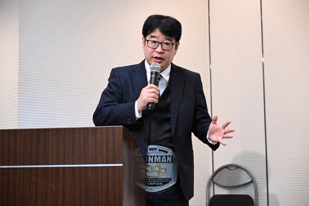 DDTプロレスが3月20日、都内で「Judgement2026~旗揚げ29周年記念大会5時間スペシャル~」(3月22日、東京・後楽園ホール)に向け公開記者会見を開いた。“プロレス王”鈴木みのるが会見の最中に今林久弥GMからアイアンマンヘビーメタル級王座を強奪。急きょ、新王者・鈴木に髙木三四郎、大鷲透、男色ディーノ、スーパー・ササダンゴ・マシン、アントーニオ本多、今林GMの6人が挑むことになった。